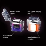 🔹 Discover the ultimate plasma lighter with a built-in flashlight offering 3 brightness modes (medium, high, and strobe).